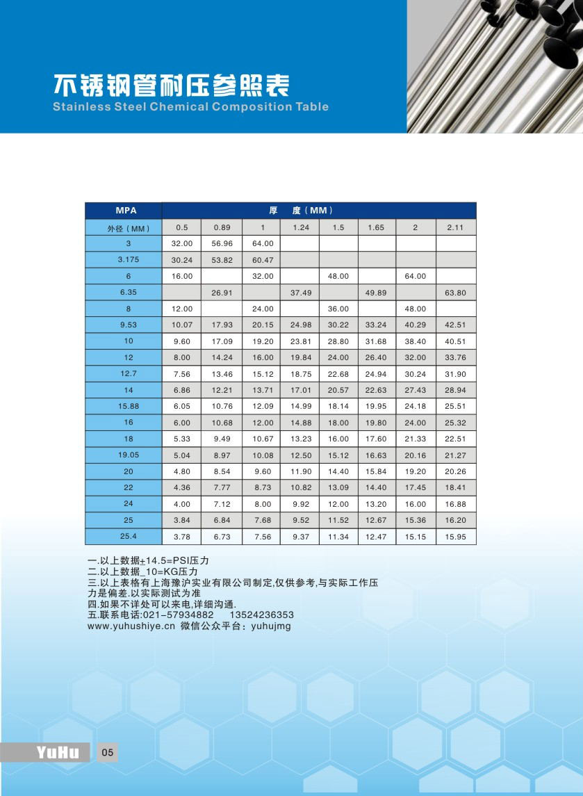 不銹鋼壓力參數(shù)表及規(guī)格對(duì)照表參數(shù)